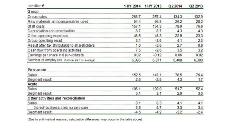 If one compares the second quarter 2014 with the first quarter 2014 the post-acute segment posted further sales increases and result improvements in the second quarter of 2014. In line with expectations the acute segment could not reach the high sales figures of the first quarter 2014 leading to a lower segment result compared to the first quarter of 2014.