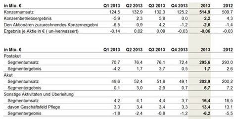 Die Auslastung im Monat Januar 2014 im Segment Postakut sowie die Fallzahlen im Segment Akut lagen über den Werten des Vorjahresmonats, sodass von einem besseren Start in das neue Geschäftsjahr ausgegangen wird.