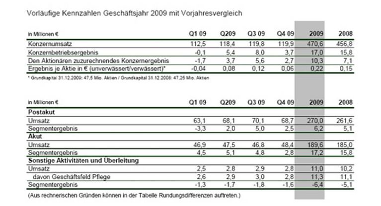 Sie hat Umsatzerlöse in Höhe von 470,6 Mio. Euro (2008: 456,8 Mio. Euro) erzielt – gegenüber 2008 ist dies eine Steigerung von 3,0%. Erzielt werden konnte ein vorläufiges Konzernbetriebsergebnis in Höhe von 17,0 Mio. Euro (2008: 15,8 Mio. Euro). Das den Aktionären zuzurechnende vorläufige Konzernergebnis beträgt 10,3 Mio. Euro (2008: 7,1 Mio. Euro).