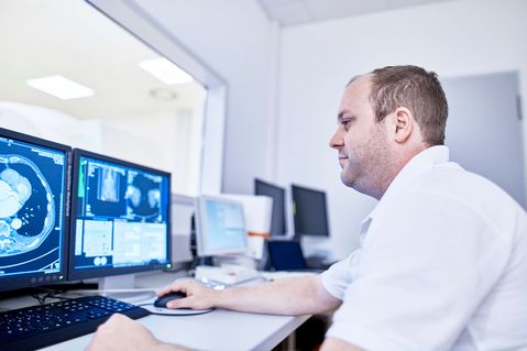 Bei Verdacht auf Schlaganfall muss alles möglichst schnell gehen — auch die Diagnostik. Zuerst erfolgt eine neurologische Untersuchung. Danach kann der Neurologe oder die Neurologin meist mit großer Sicherheit die Diagnose „Schlaganfall“ stellen oder auch ausschließen. Für die weitere Behandlung benötigen die Ärzt*innen aber noch mehr Informationen. Sehr wichtig ist es beispielsweise zu wissen, ob es sich um einen Hirninfarkt oder eine Hirnblutung handelt. Aber auch Ort und Schwere des Schlaganfalls sind für die gezielte Behandlung des Schlaganfalls sehr bedeutend.